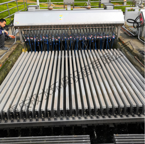 該設計優點:模塊所用材質均為耐腐蝕的316L、304不銹鋼,整個系統中燈管插座、供電插座及紫外燈電線均封閉在紫外燈模塊組件內,不會暴露于污水和紫外光水中。整個模塊支架為316、304不銹鋼制造并安裝在明渠的污水上方,每個模塊單獨設置,并無需緊固地懸掛在明渠內污水的上方,因此在更換燈管或石英套管時,每個模塊能單獨被吊起且不影響其他模塊。